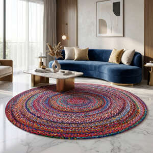 $50.40 – $356.80Price range: $50.40 through $356.80Handwoven Cotton Area Round Rug Calm Pattern