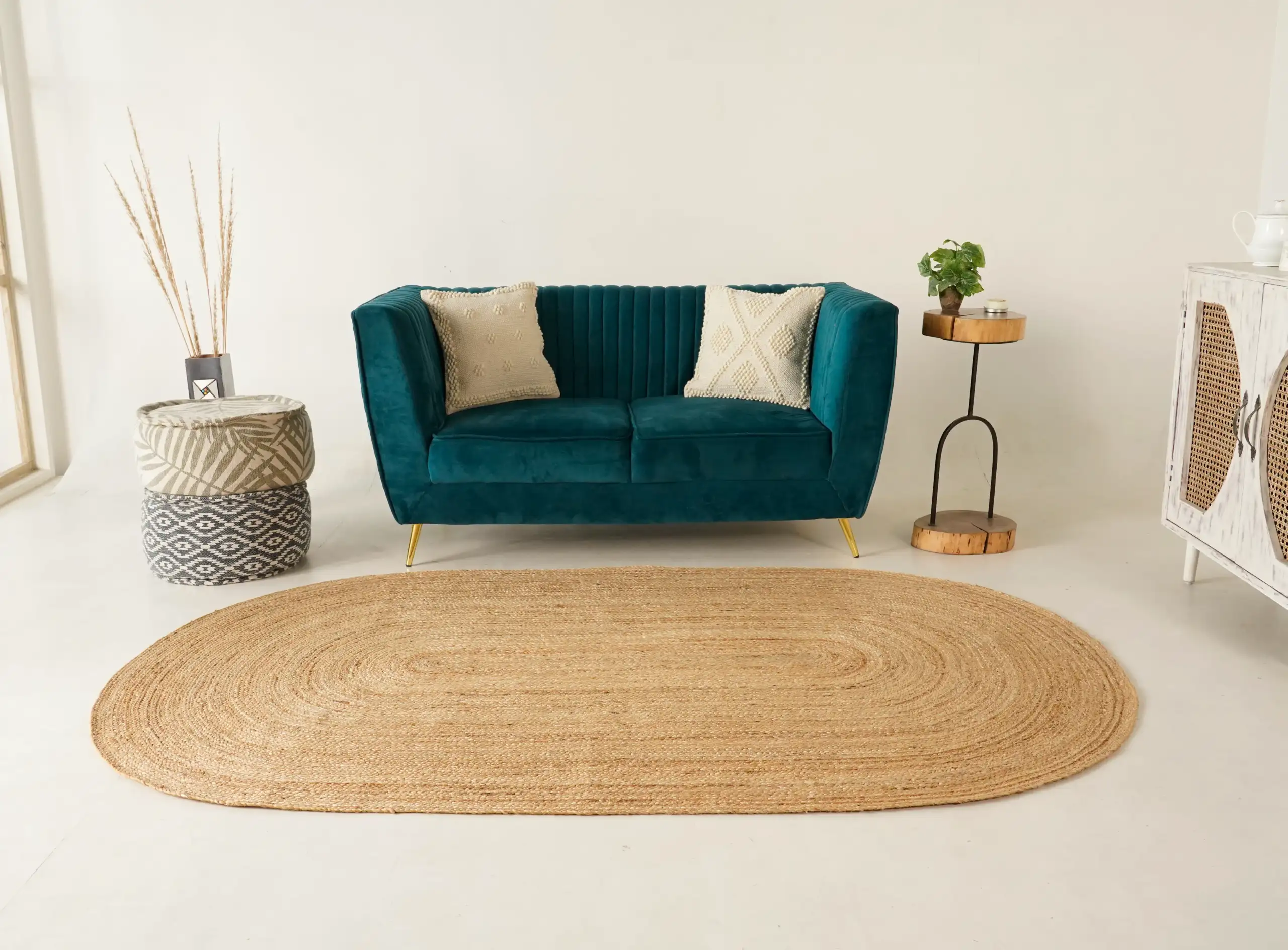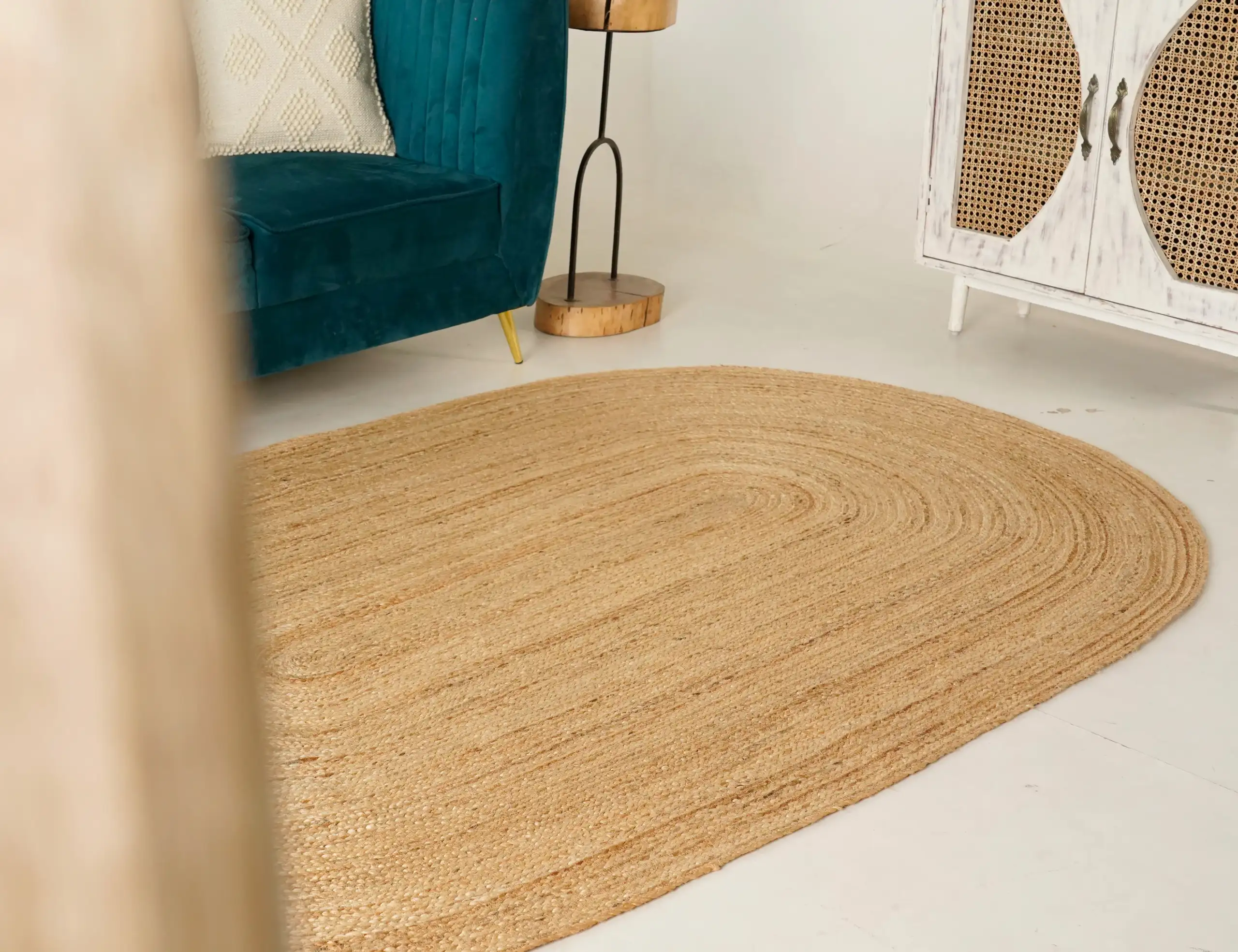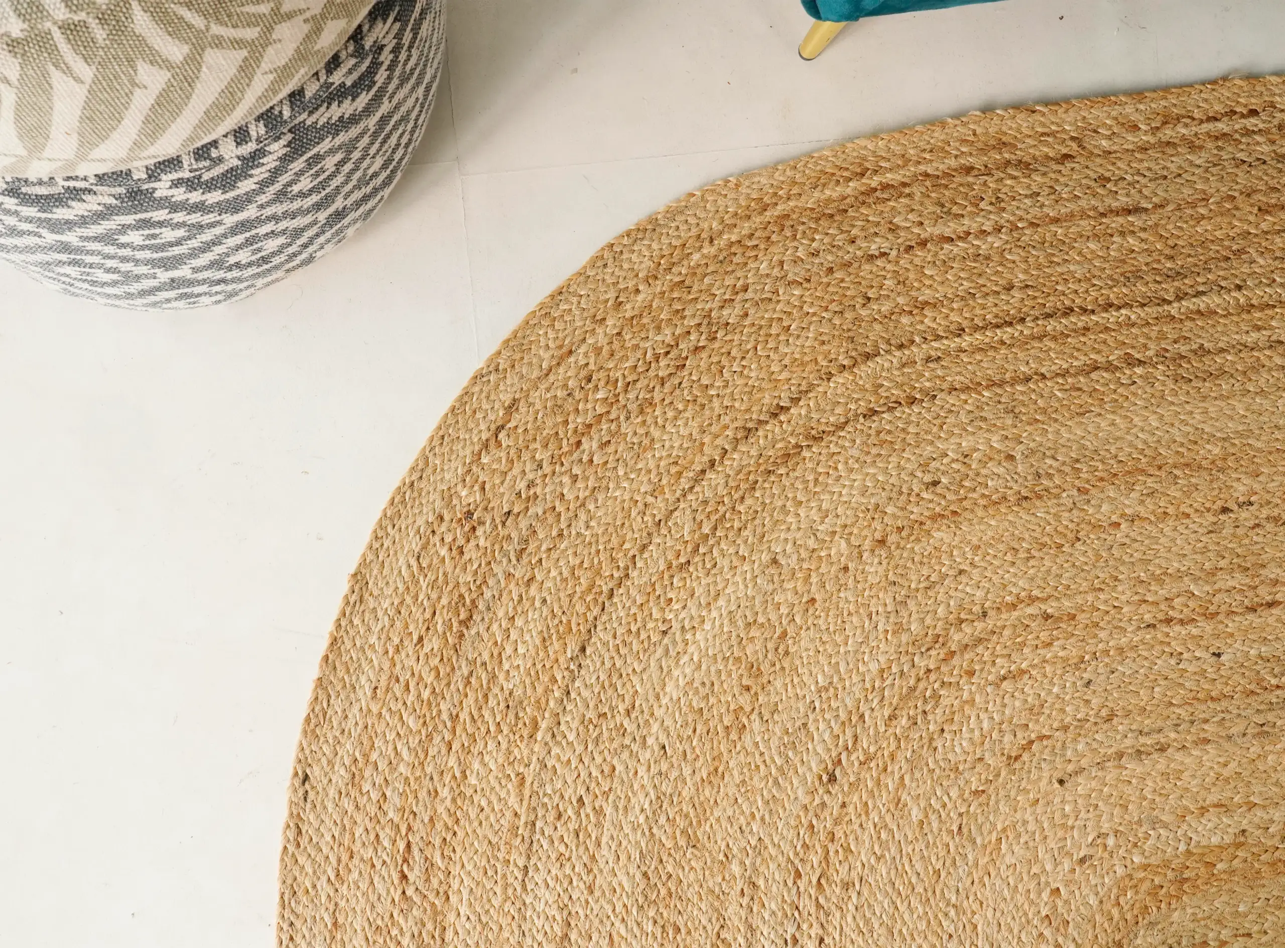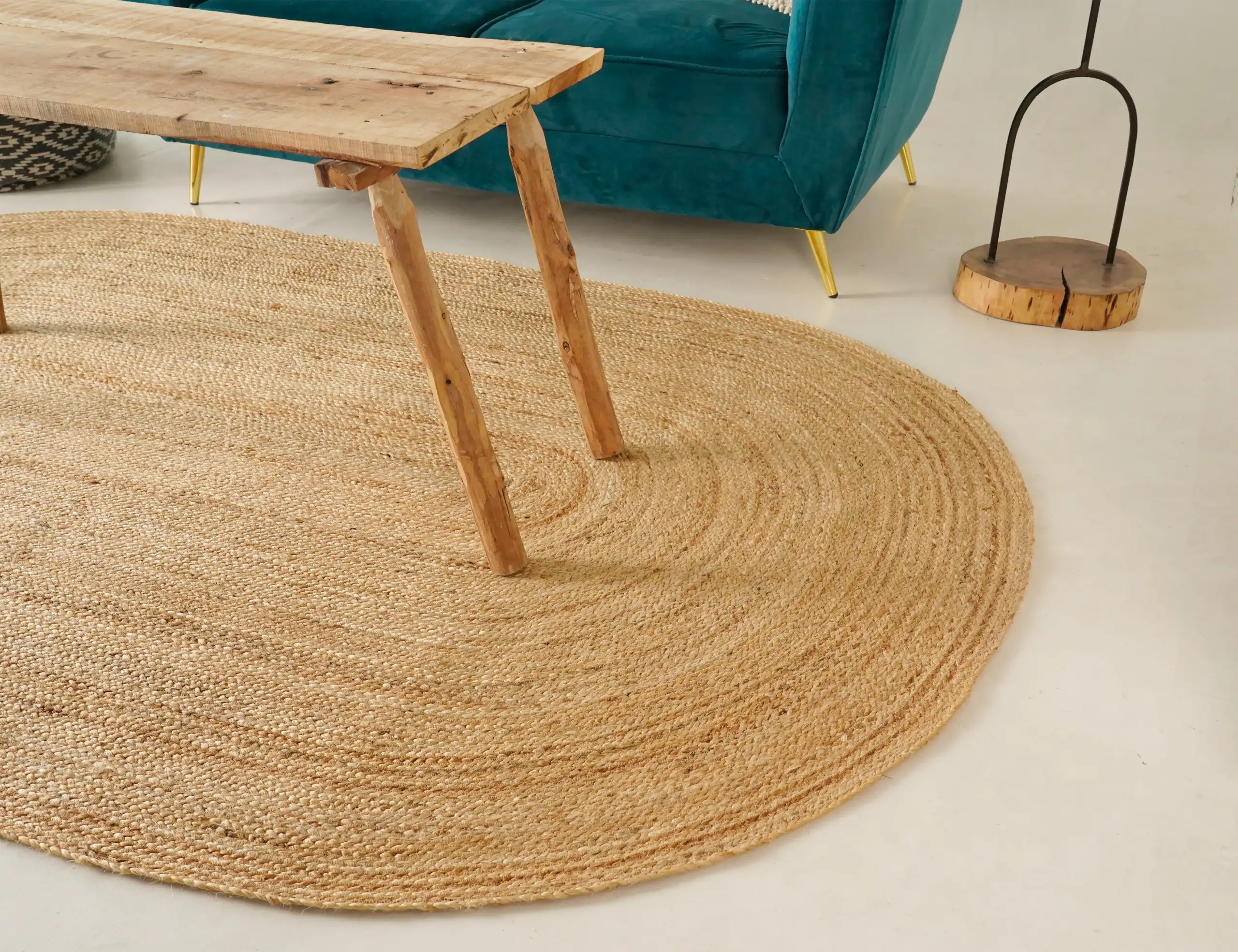 Classic braided jute rug with a natural handcrafted look, adding warm texture and eco-friendly style to living rooms, bedrooms, and everyday home interiors.