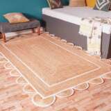 Combining function and style, this flat weave jute braided rug offers a sleek way to add visual interest to your living space without taking up floor space. The sleek style of the rug allows you to easily tuck it underneath furniture while still allowing for a neat and tidy look. The natural jute fibers are also very durable, but not heavy or cumbersome to move around in your home. The braided design gives the rug a soft touch that is perfect for use in conjunction with Scandinavian, contemporary, or minimalist styles. The versatility of this rug makes it an excellent option for both bedrooms, home offices, or small apartments where it can serve as an additional piece of functionality to your spaces by providing a clean, streamlined appearance. Additionally, the ability to rearrange and redecorate has allowed this rug to become one of the most modern examples of classic rug design.