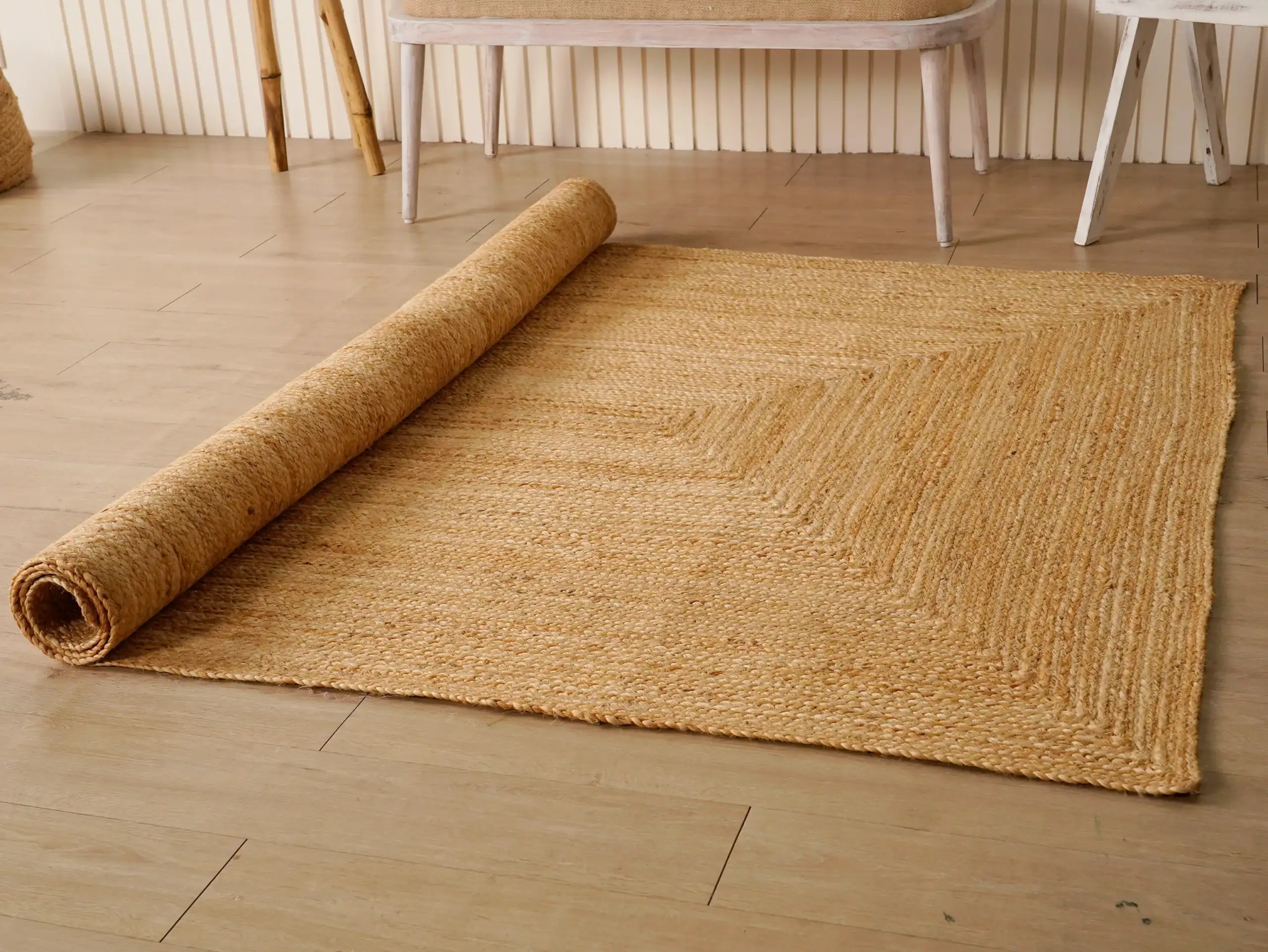 Thick premium jute braided area rug crafted for comfort and durability, bringing rustic charm and natural texture to living rooms, bedrooms, and everyday indoor spaces.