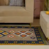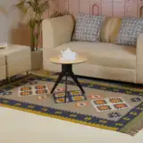 Enhance your space with this vintage wool jute kilim rug, blending classic weaving with a modern color palette. Flatwoven for easy care and everyday durability, it’s perfect for layering. Soft wool and sturdy jute offer comfort underfoot, while subtle patterns add refined elegance without overwhelming minimalist or contemporary interiors.